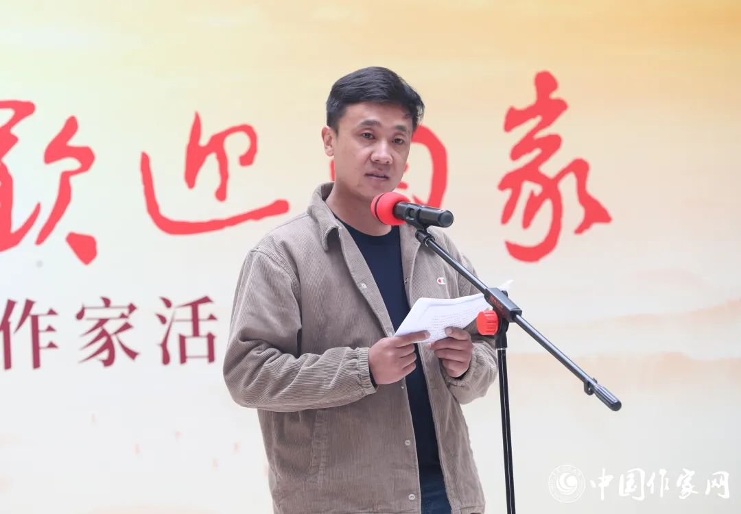 作家代表索南才讓在歡迎儀式上發言。索南才讓談到,在創作的道路上,很多作家都得到了中國作協實實在在的幫助和支持,他也是在中國作協的關心和愛護下不斷成長、不斷提高的。希望中國作協團結作家朋友的優良傳統能一直延續下去,讓更多成長中的作家得到庇護與幫助,讓大家在最艱難、最需要的時候,因為有中國作協而奠定堅實的基礎,從而走得更高更遠。